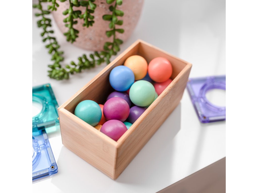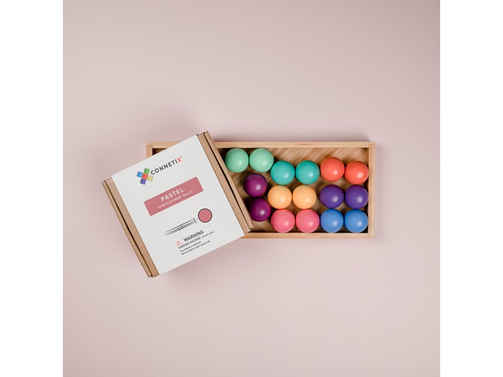 Či už potrebujete vymeniť alebo jednoducho posunúť zábavu s loptičkami na vyššiu úroveň, náhradné balenie loptičiek Pastel vám k tomu pomôže. Toto balenie obsahuje 16 drevených loptičiek (v jedinečných pastelových farbách po 2ks), ktoré skvele doplnia sadu Pastel Guličková dráha.