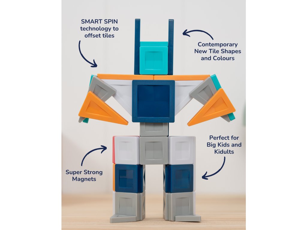 - Smart-Spin technológia – magnety sa voľne otáčajú vo vnútri dielikov a prispôsobujú sa akémukoľvek smeru stavby