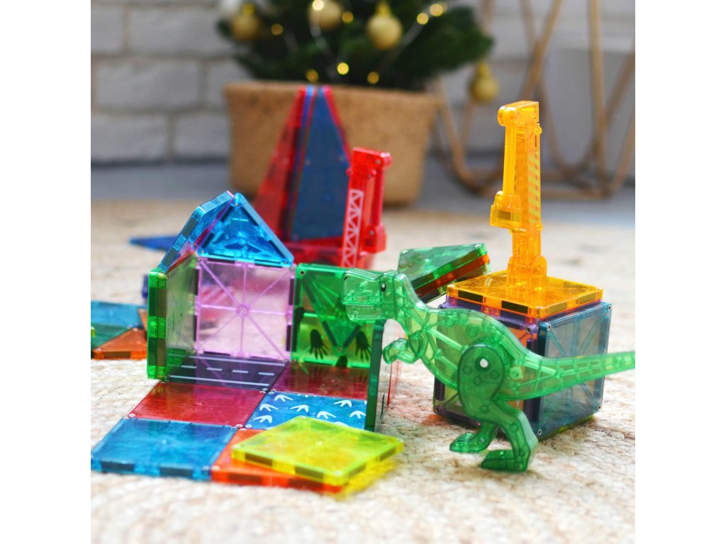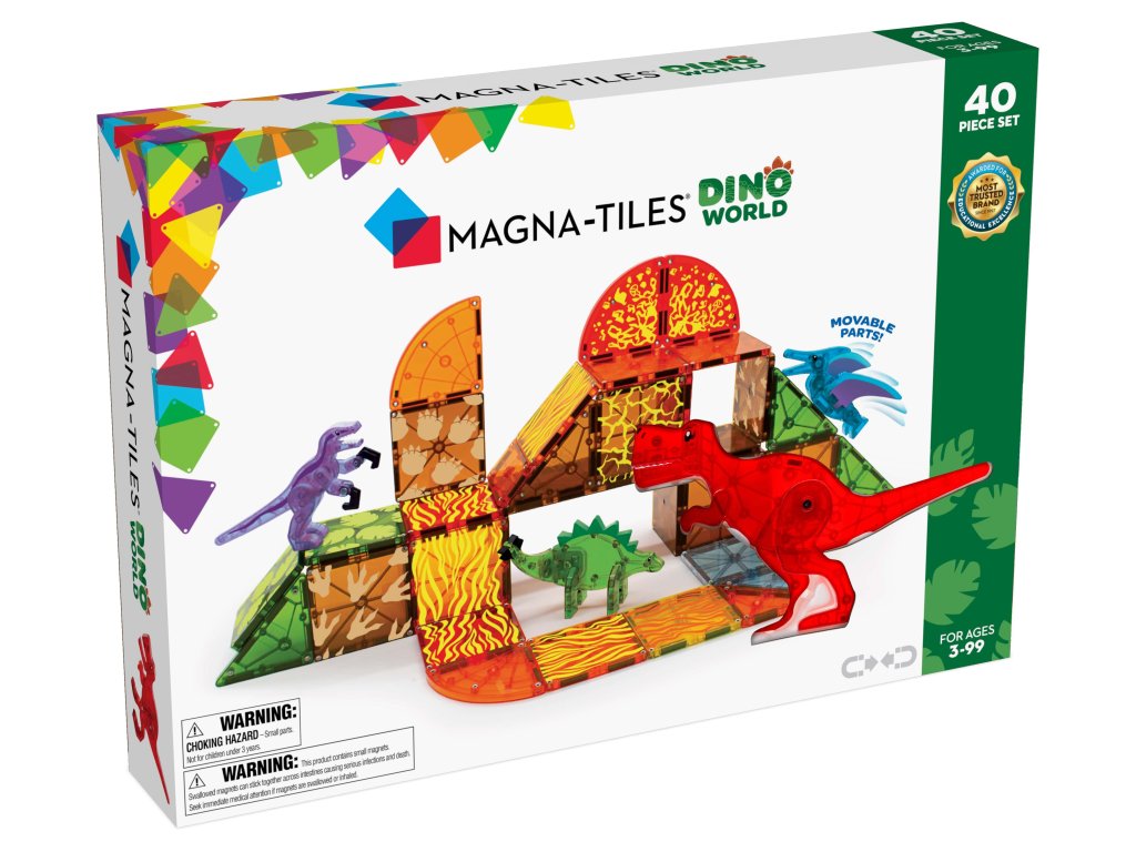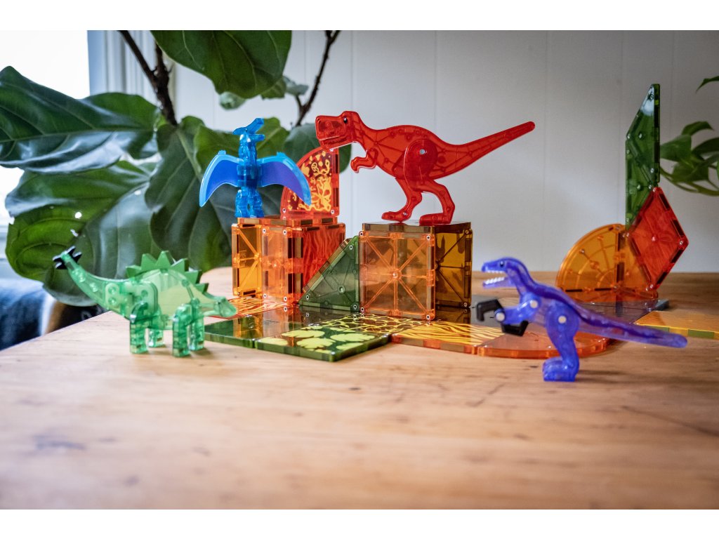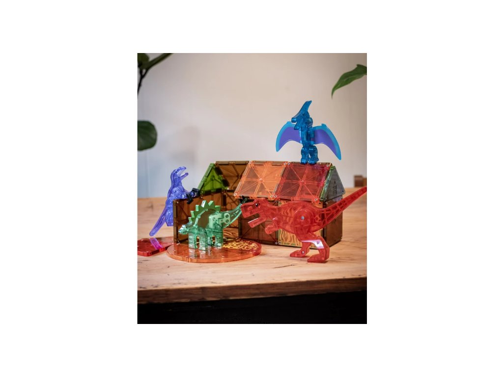 Magnetická stavebnica Dino obsahuje štyri nadrozmerné magnetické dinosaury a pestrofarebné dieliky so sopečnou tematikou Jurského parku. Nájdete tam Pteranodona, T-Rexa, Stegosaurusa a Velociraptora. Každý dinosaurus má pohyblivé časti, vďaka ktorým je skvelý k mnohým hrám. Deti okrem jemnej motoriky a logiky zároveň rozvýjajú záujem o paleonotológiu. Stavebnica je kompatibilná so všetkými súpravami Magna-Tiles®.