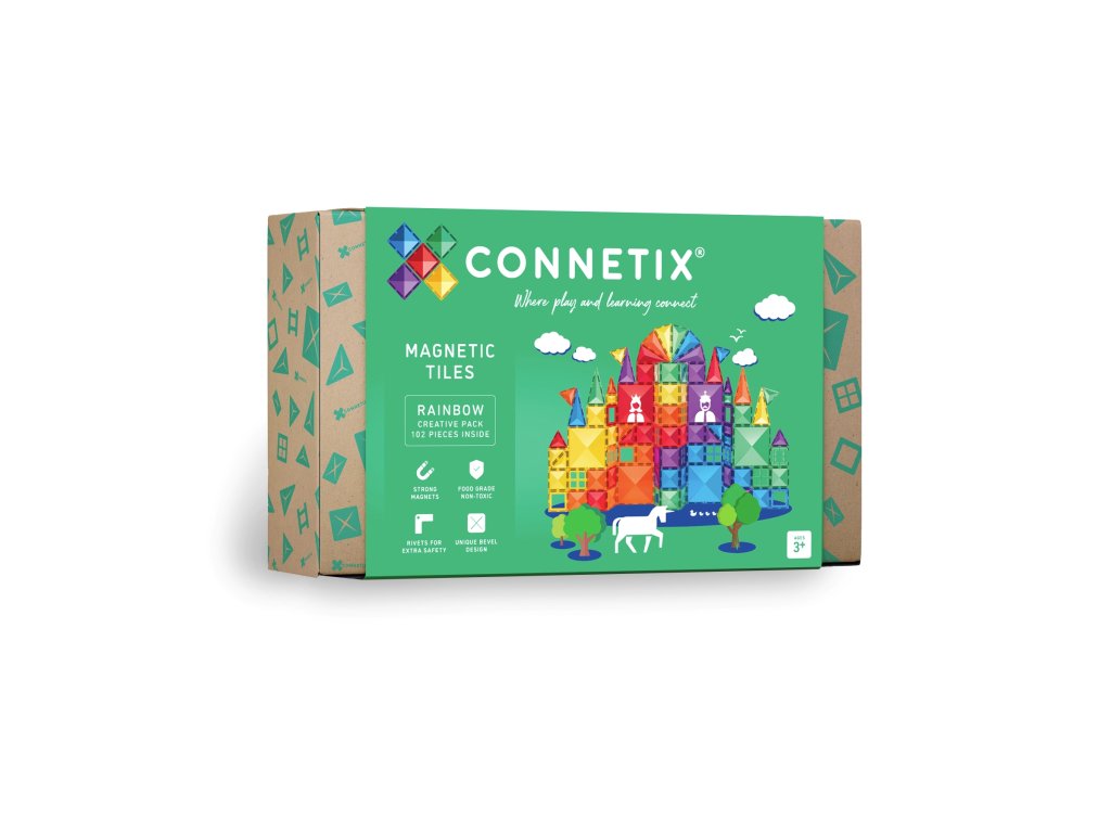 Jedna z najpredávanejších a najobľúbenejších stavebníc Connetix v dúhových farbách. Základná kreatívna sada so 102 kusmi dielikov, ktorú vrelo doporučujeme ako PRVÚ, štartovaciu sadu. Táto stavebnica je v prevedení rainbow, čiže dieliky sú v krásnych sýtych dúhových farbách.