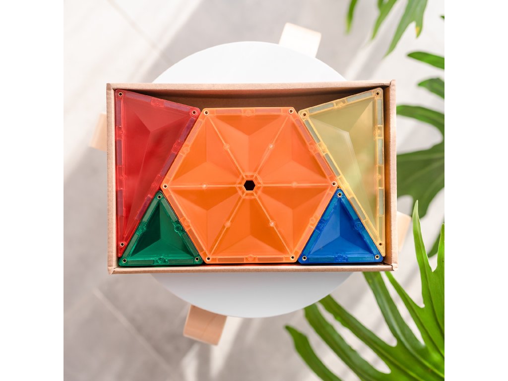 Táto sada magnetickej stavebnice Connetix obsahuje trojuholníky a šesťuholníky. Umožňuje tak hlbšie preskúmanie geometrie, magnetizmu a stavania 2D a 3D modelov. Je veľmi vhodná ako doplnková sada ku Rainbow Creative Pack alebo Rainbow Mega Pack.