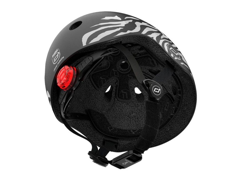 Vnútro prilby je vyplnené výstelkou EPS absorbujúcou nárazy a v škrupine je 11 ventilačných otvorov s moskytiérou, ktoré zaručujú vynikajúcu cirkuláciu vzduchu a zabraňujú poteniu hlavy. Pre väčšie pohodlie je vnútro prilby vybavené aj vankúšikom v oblasti krku dieťaťa, mäkkými okrajmi a polstrovaním (vyrobeným technológiou HF). V zadnej časti pri nastavovaní obvodu hlavy je prilba vybavená červeným LED svetlom s tromi režimami svietenia (nepretržité a dve blikania).